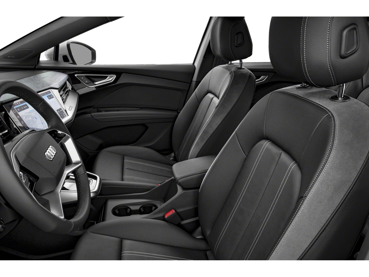 The Q4 e-tron's striking exterior exudes confidence and sophistication, thanks to the Black Optic Package's sleek, darkened accents. Step inside and be captivated by the premium cabin, where Audi's renowned craftsmanship and attention to detail are on full display. The Audi Virtual Cockpit Plus and MMI Navigation Plus system provide an intuitive and seamless driving experience, while the SONOS Premium Sound System delivers an immersive audio experience.